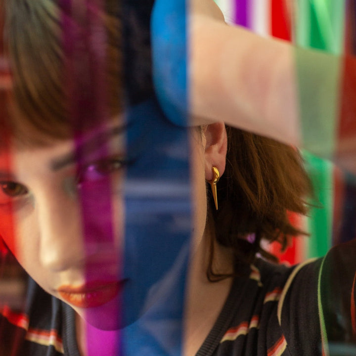 Pendientes fabricados a mano en plata de ley de 925 milésimas con baño de oro de 23k en su versión dorada y con baño de platino en la versión plateada.