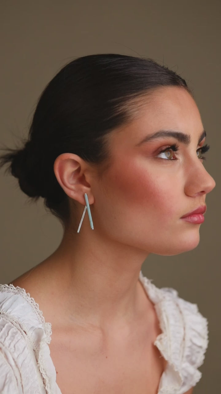 Pendientes fabricados a mano en plata de ley de 925 milésimas con baño de oro de 23K y amazonita 100% natural tallada a mano por nuestros artesanos de Vanagloria.